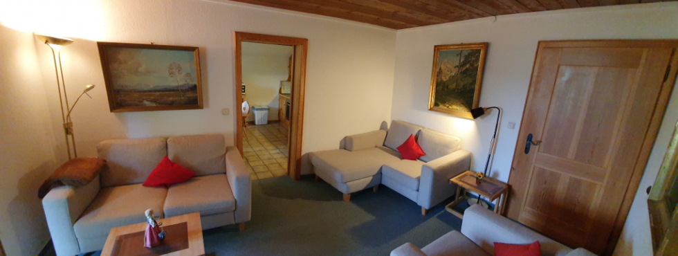 Unser Haus liegt wenige Gehminuten vom Ortskern Bad Oberdorf entfernt. Das naturbelassene Grundstück auf einem kleinen Hügel mit Blick über das Tal ist umgeben von Wiesen und Bäumen. Nur eine Zufahrtsstraße führt zu dem ruhigen Anwesen. Die örtlichen Kur- und Wellnessangebote mit Kneippanlagen und Barfußpfad, sowie spezielle Ayurveda-Anwendungen erreichen Sie zu Fuß in wenigen Minuten.